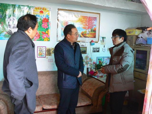 图为王红书记看望宜都市残疾青年作家陈海燕