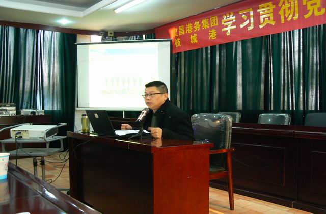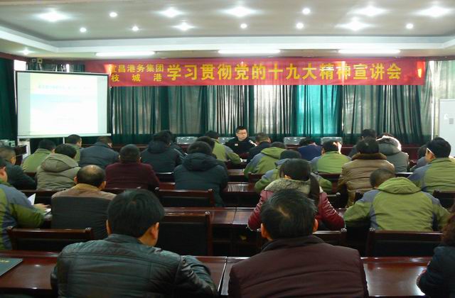 12月22日上午,宜昌市委宣讲团成员、市国企改革办副主任向军到枝城港作十九大精神专题宣讲。全港中层以上管理干部、入党积极分子和团员青年代表共95人参加了专题学习。