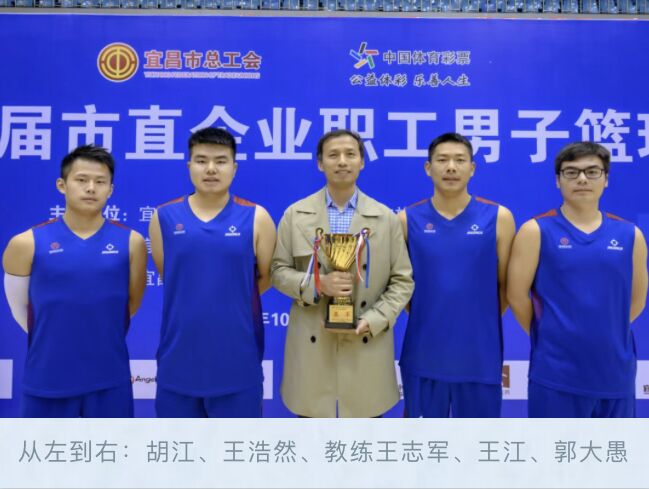 10月25日至30日,在宜昌市首届市直企业男子篮球联赛中,由宜昌港务集团工会选派的王江、郭大愚、王浩然、胡江4 名同志作为交旅集团男子篮球队成员参赛。比赛中,他们球技高超、不畏强手、敢打敢拼、团结协作,是赛场上靓丽的风景线,是交旅战队的绝对主力,最终助力交旅集团男子篮球队以三战全胜、小组第一的成绩顺利出线,荣获亚军。