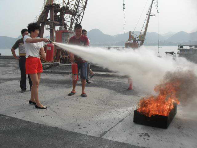在培训中,李教官用大量的事故案例照片、生动的语言,讲解了火灾的预防、火场如何逃生以及消防器材的使用等相关知识,使到场培训人员获益匪浅,增强了消防自救意识。在讲课完毕后,全部培训人员来到公司18码头,进行了消防器材的实际使用演练,用实际操作与所学知识互相印证,进一步加强预防火灾的能力。