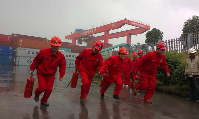 11月9日是每年一度的“消防日”,与往年不同,今年集装箱公司从11月3至5日举行了为期三天的消防技能知识培训,公司5名一线班组长及3名新进员工全天候脱产式训练。11月6日,公司组织消防实战,长航公安宜昌派出所主管安全、消防的副所长廖复强以及宜昌港航管理局猇亭分局的管理人员来到演练现场观看。尽管演习的现场飘着雨点,气温仅10度左右,但经过三天实战训练的8人“战斗小组”精神抖擞,演练一气呵成,赢得在场观摩学习员工的热烈掌声。随后安全管理员毛征波还向在场员工展示最新的水基灭火器。公司开展的消防培训与演习为云池港的消防平安,增添了一份保障。