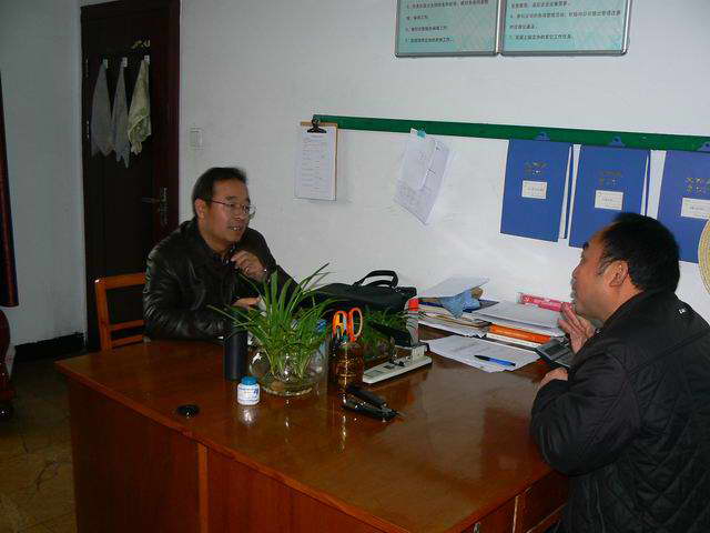 图为王红书记在枝城港装卸二队与队长兼书记吴善凡交谈