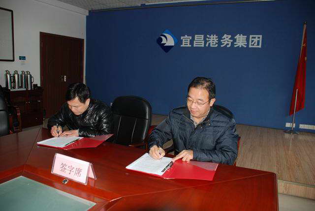 图为王红书记与枝城港党委书记马爱东签订党风廉政建设责任书