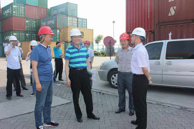 5月30日下午,武汉海关关务保障处副处长吕金强在宜昌海关副关长王天强、集团副总经理庞小波、云池港公司总经理夏茂想的陪同下到云池港调研H986大型集装箱检查设备的建设情况。