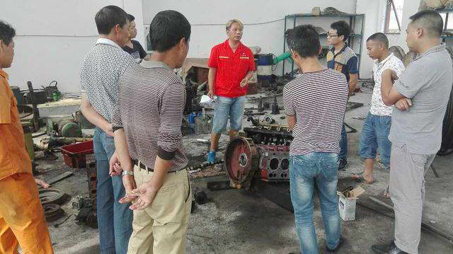 6月3日,云池港公司举办了一场发动机现场教学培训。在整齐摆满发动机部件的维修车间内,讲师叶正发和众多学员围在一起,对比实物,深入学习了发动机的构造,逐一了解了发动机两大机构、四大系统的组成。结合构造,进一步讲解了各机构系统的工作原理以及作用,并结合实际工作,提醒大家日常保养操作时要注意的事项,传授了学员一些常见一般性故障的排除方法。同时,对一些重大机损事故如:飞车、抱瓦、拉缸、敲缸等,从起因上也给大家做了一个分析梳理。