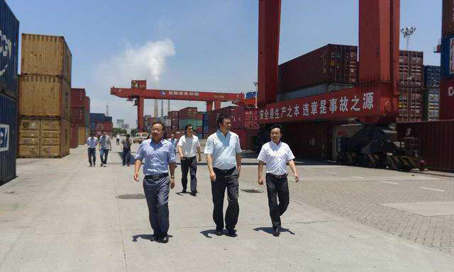 6月16日上午,武汉港航发展集团有限公司总经理雷德超、副总经理董政,武汉港务集团副总经理周璋,武汉港航发展集团和武汉新港投集团相关部门领导一行来港进行调研。集团总经理王红、副总经理庞小波陪同来宾先后参观了枝城港区和云池港区,并对两个港区的功能定位、规模能力和运营情况,以及下一步建设发展规划进行了介绍。枝城港区、云池港区近年来的建设发展得到来宾们的充分肯定。