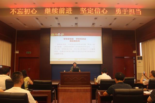 党课以“不忘初心,继续前进,坚定信心,勇于担当”为题分两个部分展开,在第一部分,集团党委成员、副总经理庞小波带领大家学习了习近平总书记在7月1日庆祝中国共产党成立95周年大会上的重要讲话,要求全体党员要不忘初心、忠于初心、守住初心,用行动践行入党誓言。在第二部分,他结合当前市场形势、公司的发展态势,要求大家认清形势,坚定发展信心;同时要勇于担当,咬定目标任务。