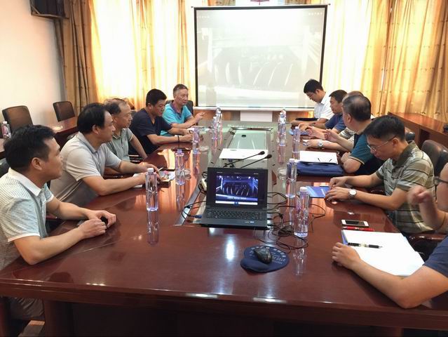 图为专家领导组听取刘践明总经理介绍港口情况