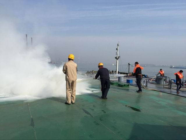 图为正在进行船舶灭火演练