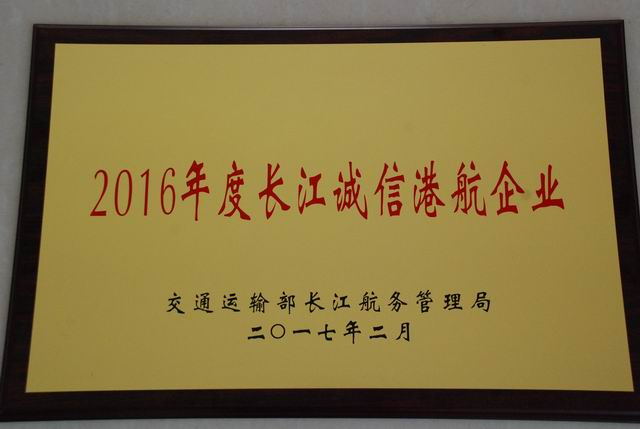 宜昌港务集团获得“2016年度长江诚信港航企业”荣誉称号