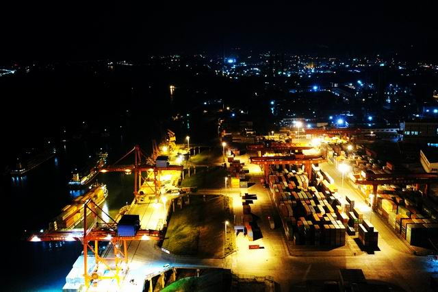 4月4日,夜色中的宜昌港务集团云池港区灯火通明,船舶往来穿梭。清明小长假期间,广大员工依然坚守生产一线,港口呈现一片繁忙的景象。近年来,宜昌港务集团抢抓国家“一带一路”、“长江经济带”战略深入实施和宜昌自由贸易试验区建设带来的重大机遇,严格执行24小时服务承诺,打造三峡区域集装箱中转中心。据了解,一季度云池港集装箱吞吐量突破5.5万标箱,同比增长40.3%,创历史最佳成绩。其中3月份集装箱吞吐量完成23335标箱,同比增长108.7%,刷新20年来单月吞吐量历史记录。