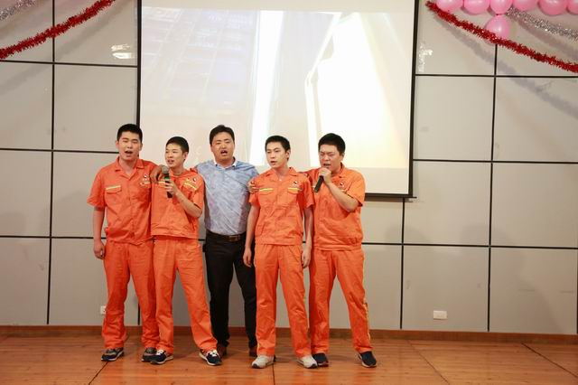 图为云池港团支部青年代表演唱歌曲《真心英雄》