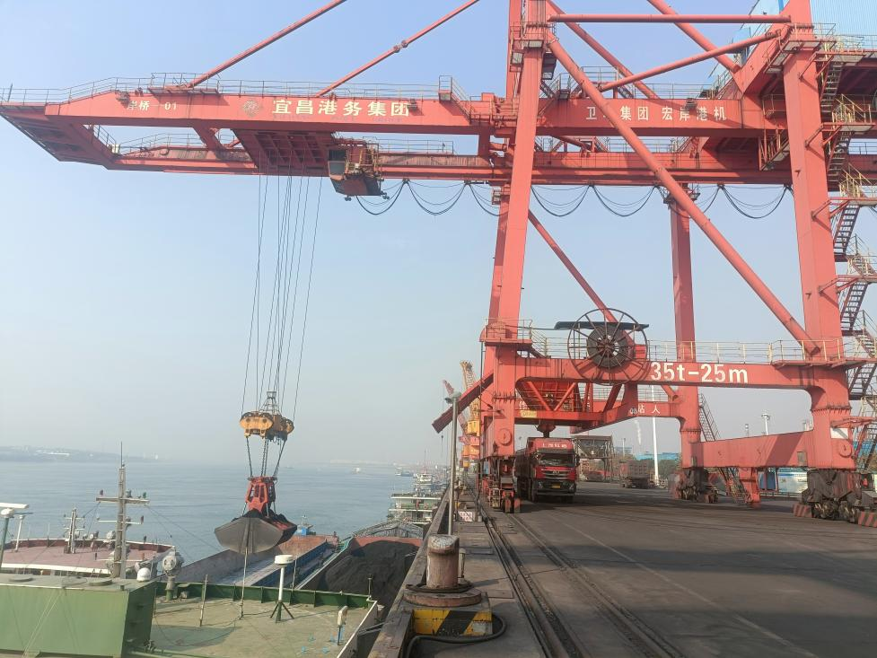 华润电力(宜昌)有限公司是云池港的核心客户,在云池港主要进行水运煤的装卸业务。在与华润电厂沟通过程中了解到,临近年底,为响应“保供保暖”政策,需双电机满负荷运行,日均耗煤达6000余吨,因此对港口装卸效率提出了更高要求。云池港公司迅速行动,面对时间紧、船期紧、任务重等多重困难,相关部门科学统筹安排,合理调配人员、设备、场地等生产资源,压缩非生产性时间,提高泊位利用率,保障车、船、货高效衔接,实现了量效齐增。