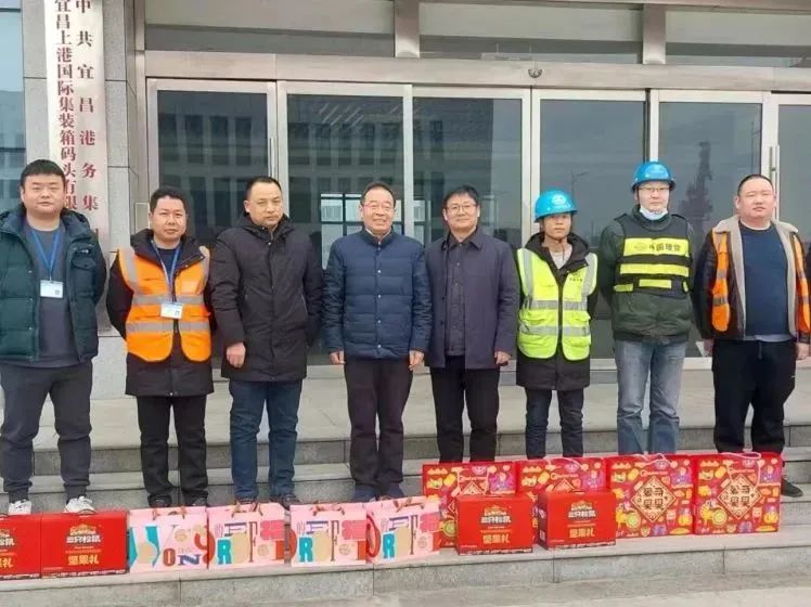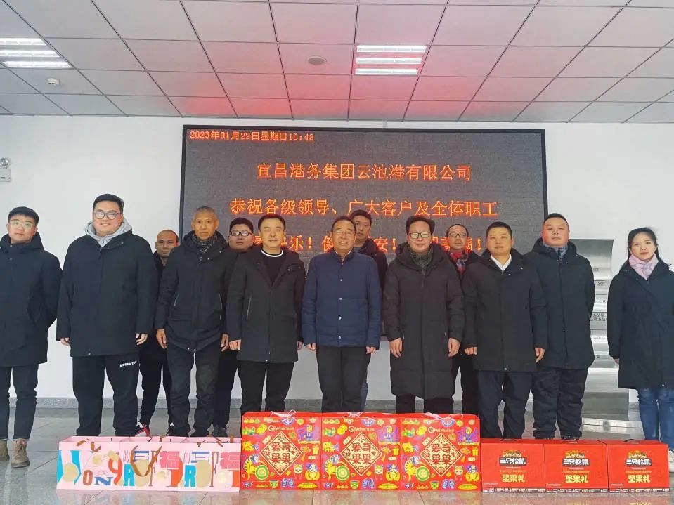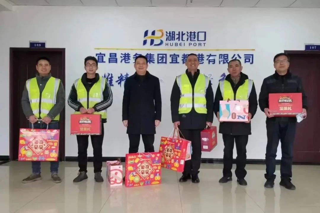 1月22日,癸卯年大年初一,王红一行先后前往枝城港、云池港、白洋港,对坚守岗位的员工进行慰问,并致以节日美好祝福。