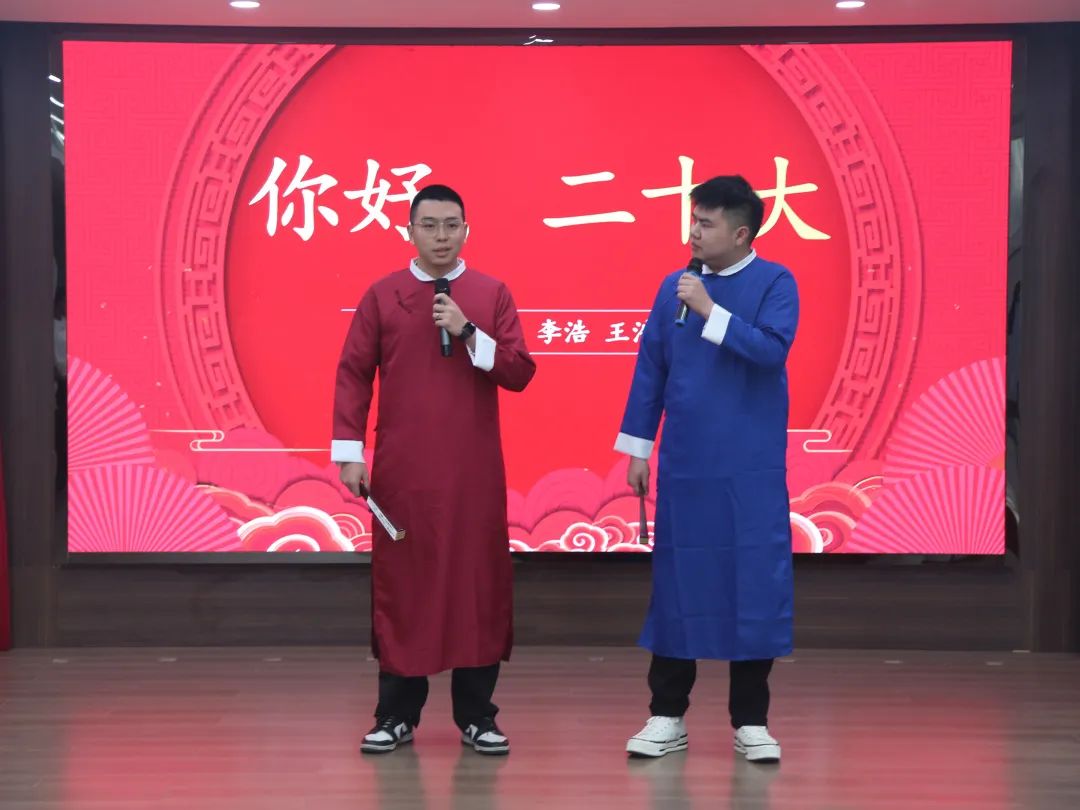 随后,一场洋溢着青春朝气与活力的文艺盛宴在诗歌朗诵《青春中国》中掀起篇章。合唱《我骄傲我是中国人》《最美的太阳》,独唱《交换余生》,对唱《真心英雄》,相声《你好,二十大》《卷王之王》,情景短剧《觉醒-中国》《满江红》,舞蹈《国家》等节目接连登场,奏响了新时代青年的青春乐章。