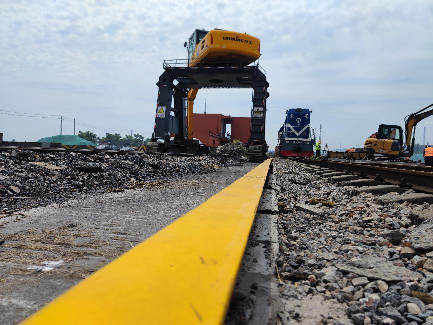 今年3月,货一线配置了一台履带式龙门卸料机,用于散货卸车作业。因货一线与机车整备线距离较近,卸料机作业时履带不规范走行可能会对整备线及23#道岔区段的机车、车辆造成误撞误擦,为了避免此类事故发生,铁运公司成立攻关小组,在经过多次试验后,利用废旧钢轨垂直埋入地下形成钢轨桩,在钢轨桩上部焊接与地面平行的旧轨,并涂上醒目的黄色反光油漆,长约150米、牢固耐用的钢轨限位护栏不仅为港口设备安全筑牢了坚实屏障,还为公司节约成本近五千元。