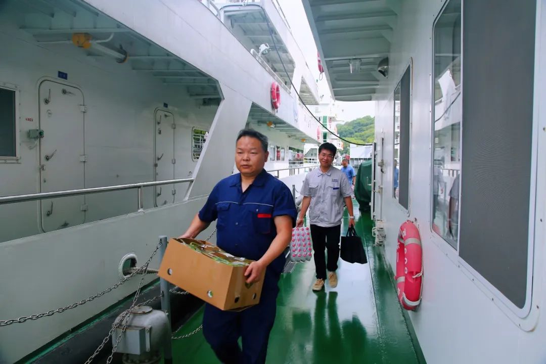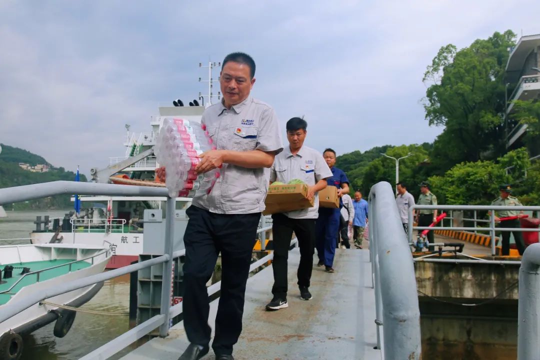 活动开始前,魏中俊代表集团对驻守坝前的“宜港拖2036”轮全体船员送去生活物资进行慰问,勉励大家坚守岗位,抓好安全生产,做好生活保障,以饱满的精神状态投入到防汛值守中。