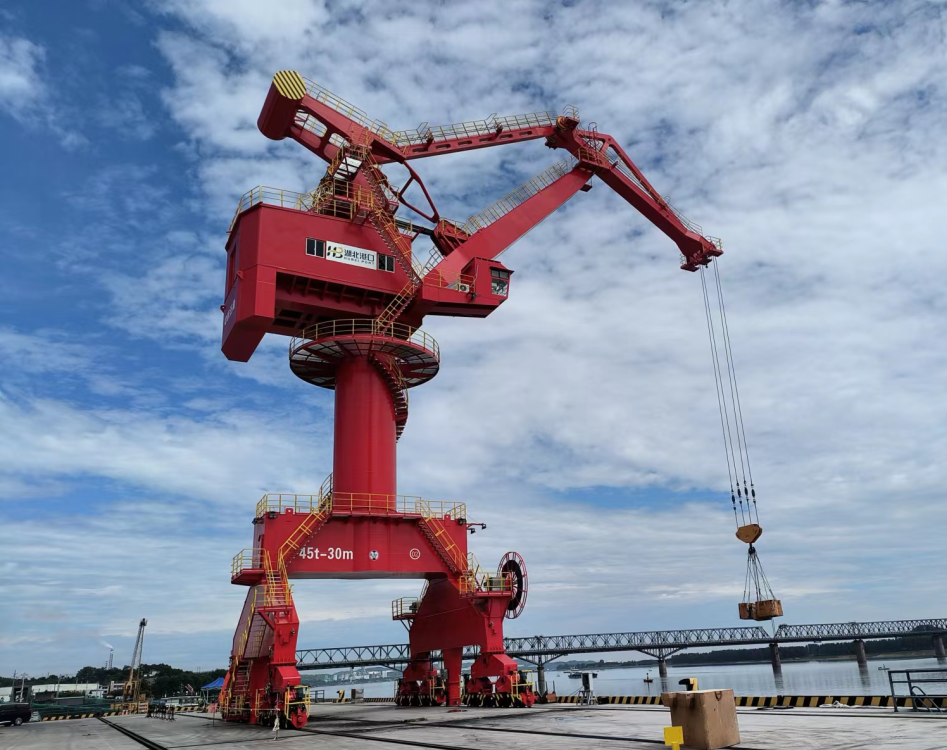 近日,枝城港铁水联运码头一期工程两台45t-30m门座起重机通过宜昌市特种设备检测中心检验。