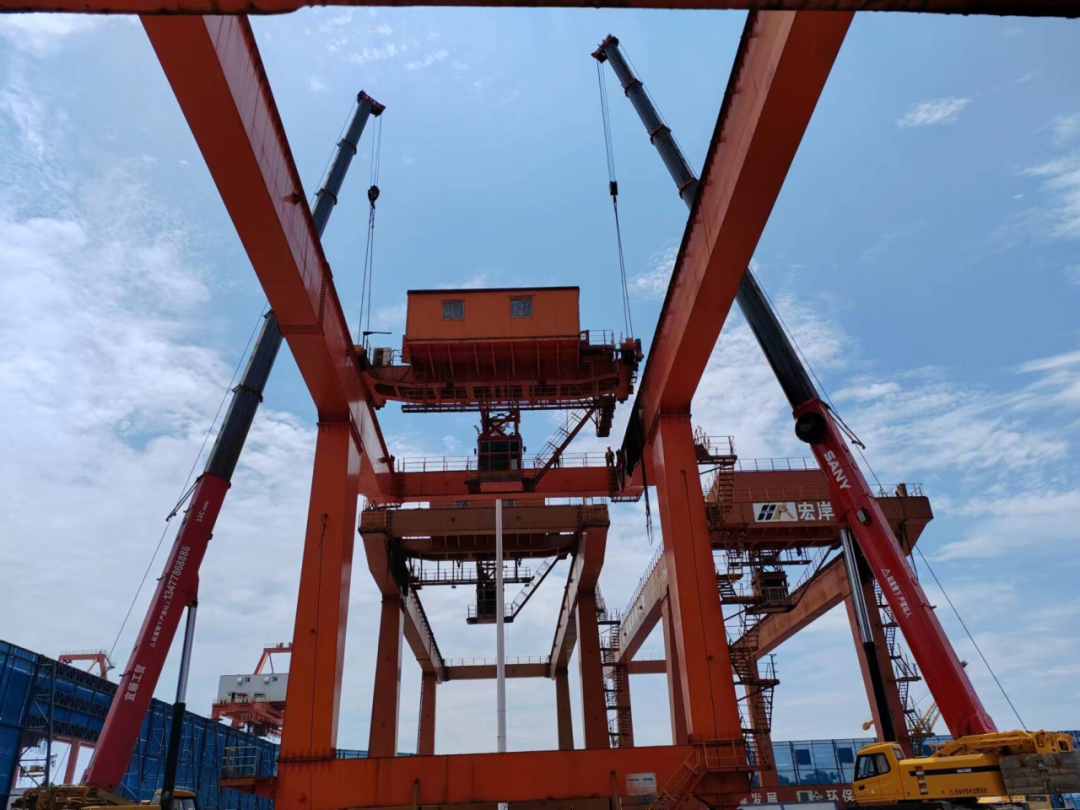 为盘活闲置资产,充分利用现有设备,提升闲置资产再利用率,集团将云池港2、3、4号场桥列入枝城港铁水联运码头一期工程设备配置计划中,随着该工程陆域堆场施工进入收尾阶段,三台场桥搬迁工作快速推进。2023年7月5日,项目监理部签发工程开工令,设备拆迁现场施工正式开始。