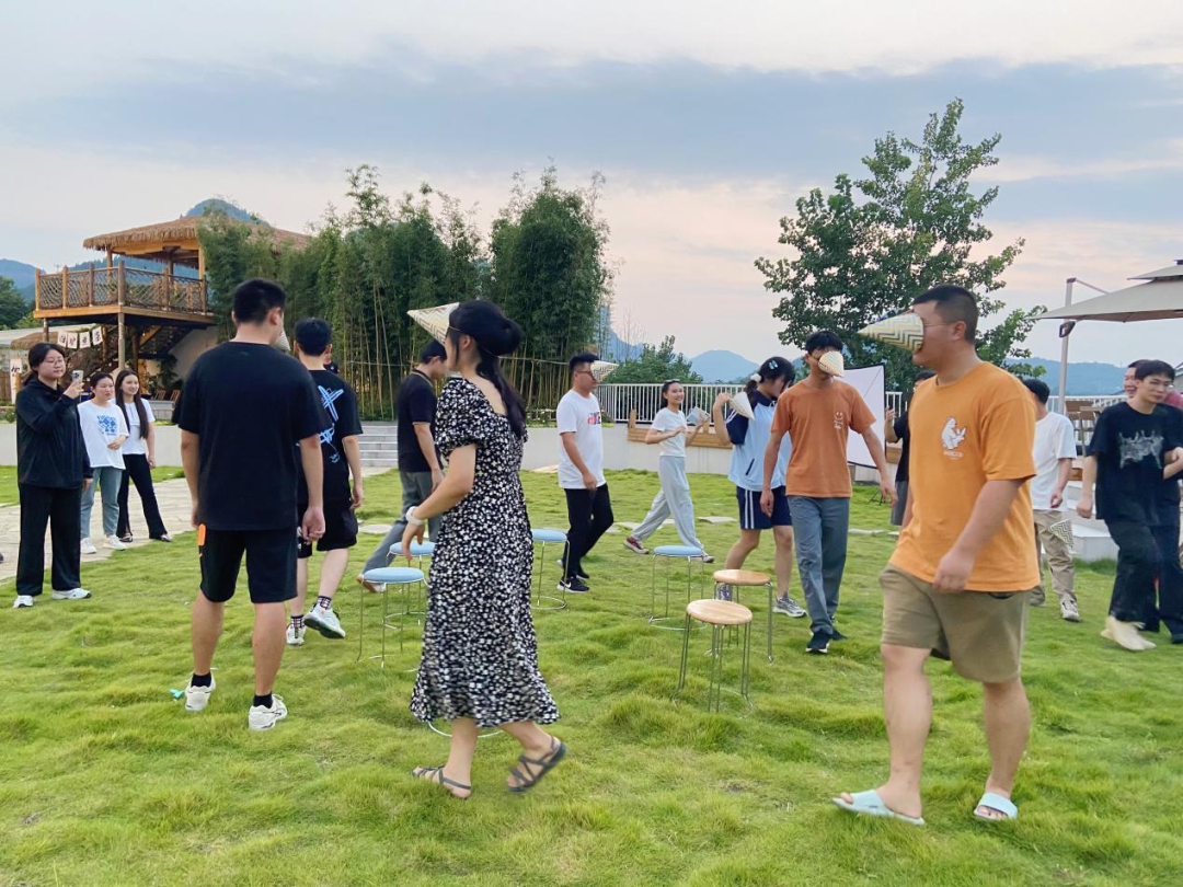 “桃花开几朵?”“6朵!”......随着欢快音乐的奏响,在“桃花朵朵开”破冰环节,大家迅速根据主持人报出的数字寻找队员组团,避免接受生吃柠檬的惩罚。“三人四足跑”游戏最考验团队的凝聚力,大家放下拘谨,相互挽着手搭着背,大声喊着口号配合默契地向终点前进。“背靠背夹气球”“蒙眼抢凳子”等游戏将活动推向高潮,随着气球一个个爆炸,引起胆小女生的一片尖叫;圆锥帽蒙在脸上的别致戴法体现了工作人员别出心裁的创意。在轻松愉快的氛围中,初次相遇的青年男女逐渐放下顾虑、主动交流,所有人脸上都洋溢着欢乐的笑容。游戏结束后,伴随着丝丝江风,大家自发坐在草坪上齐声歌唱,活动在大家的欢声笑语中落下帷幕。