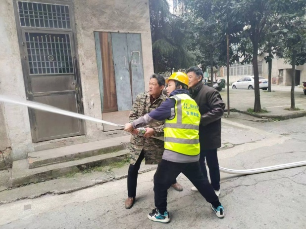 培训中,由党员干部郑科元牵头组成的志愿服务小分队结合近年来发生的火灾案例,普及消防安全知识,强调提升消防安全意识的重要性,针对出租物业常见火灾特点,从“防火”“灭火”“逃生”“自救”四个方面详细介绍了火灾的形成过程、自救逃生的方法等一系列消防安全知识,现场指导群众进行实操演练,掌握初期火灾扑救技能,赢得了大家的广泛好评。