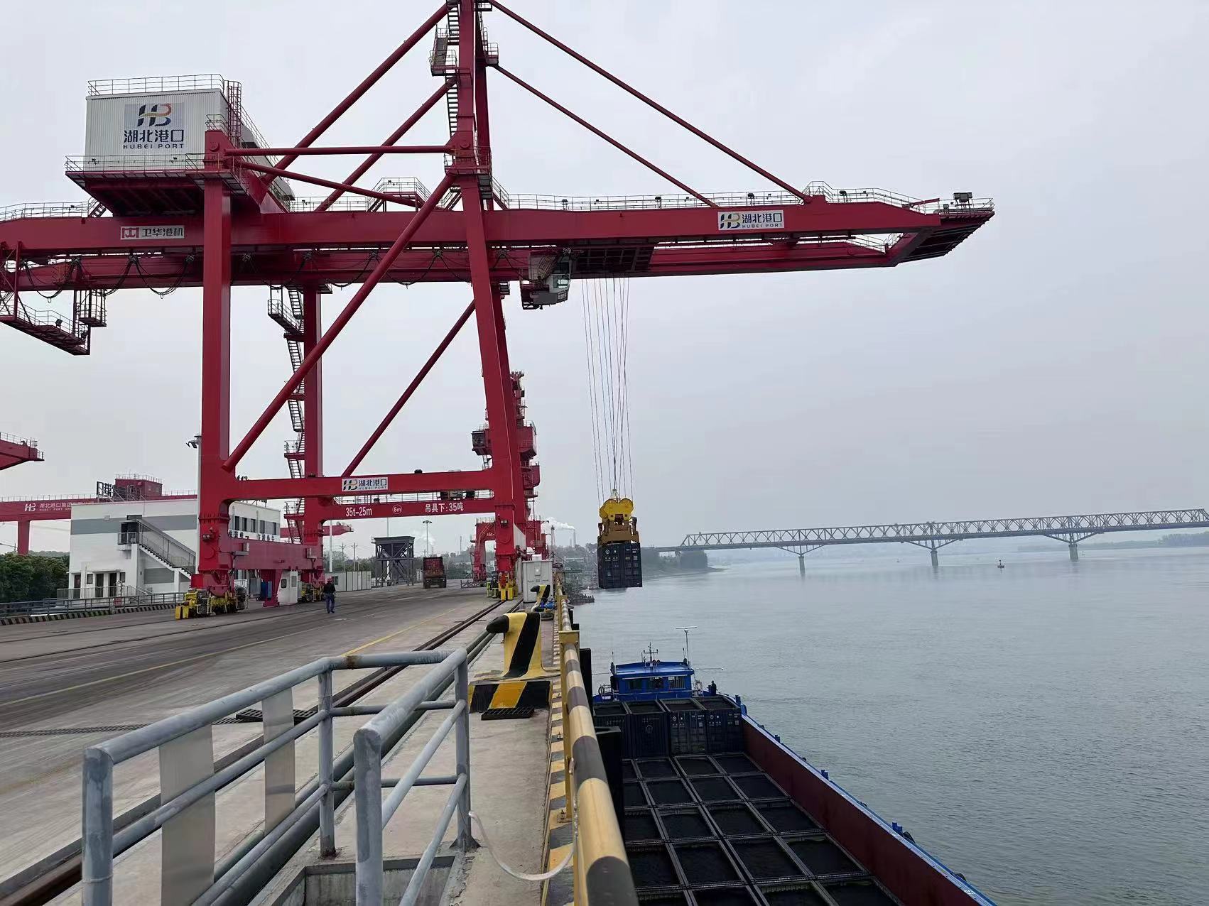 4月1日,首批64个煤炭集装箱在枝城港铁水联运码头吊装上船,随后运往宜港集团宜都港区。标志着枝城港-宜都港两港间水运集装箱钟摆航线首次开航。