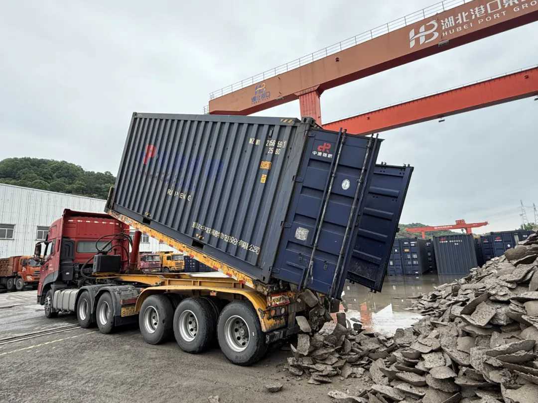 针对镍铁易撒漏、难抓取等难点,技术团队将3吨抓斗升级为5吨大容量抓斗,并创新推行“装载机舱内装箱+岸桥起坡上车+双自卸车循环转运”流程。单箱净重30吨,单循环时间压缩至12分钟,设备空转与货物损耗显著减少。作业效率由60吨/小时跃升至150吨/小时,日均卸船能力突破2000吨。