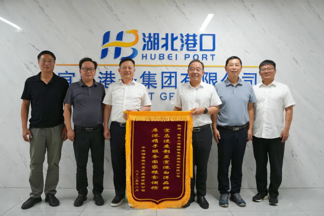 8月29日,中央储备粮宜昌直属库有限公司党总支书记、总经理 胡友将一面印有“宜港速度彰显宜港白洋品牌 库港携手服务国家粮食调控”的锦旗和一封感谢信送至宜港集团,对集团白洋港在24万吨储备粮中转任务中展现的优质服务和高效转运给予高度评价和衷心感谢。